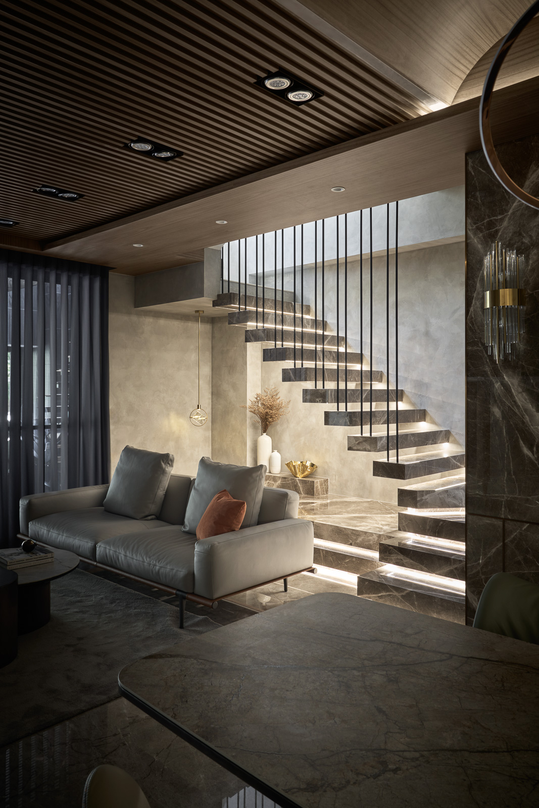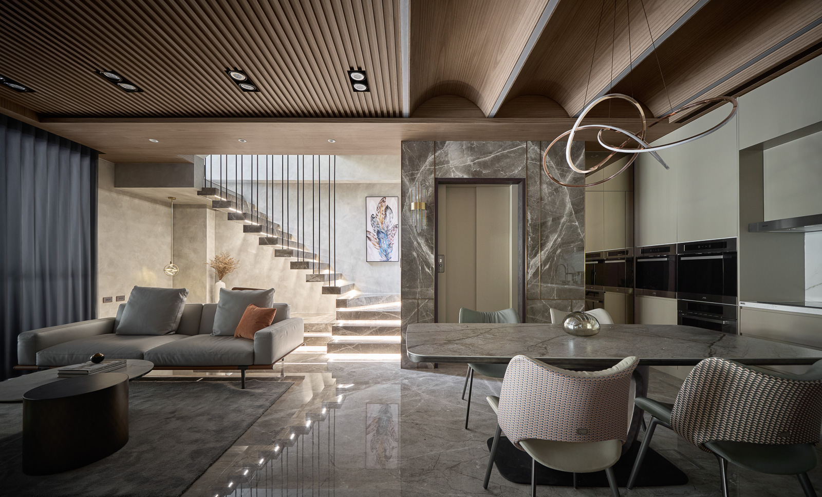 本案是一間六層透天宅,透過層層空間規劃,揉合飯店的舒適感與家的溫暖,實現屋主對於生活品質的高標準與空間氛圍的極致追求。